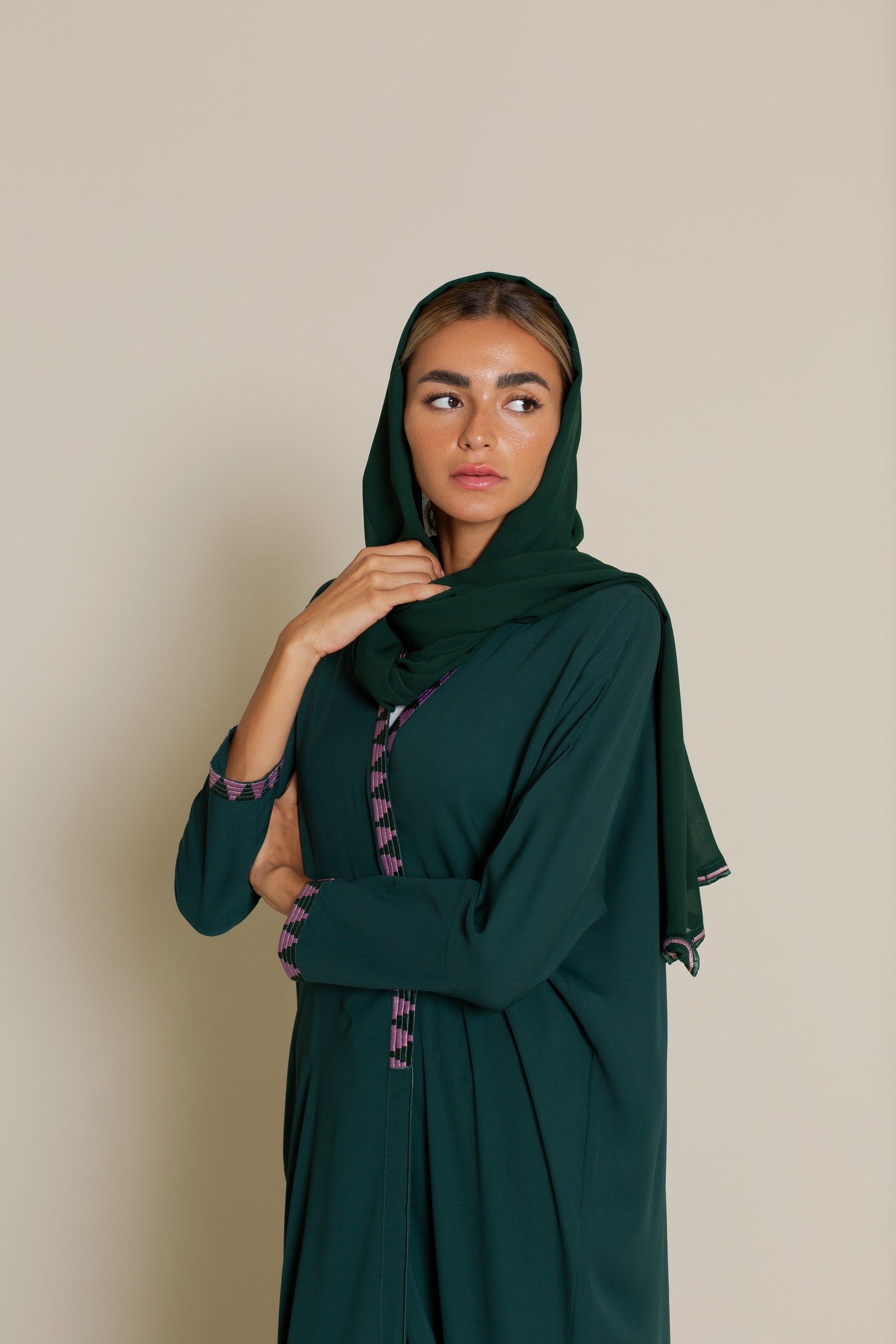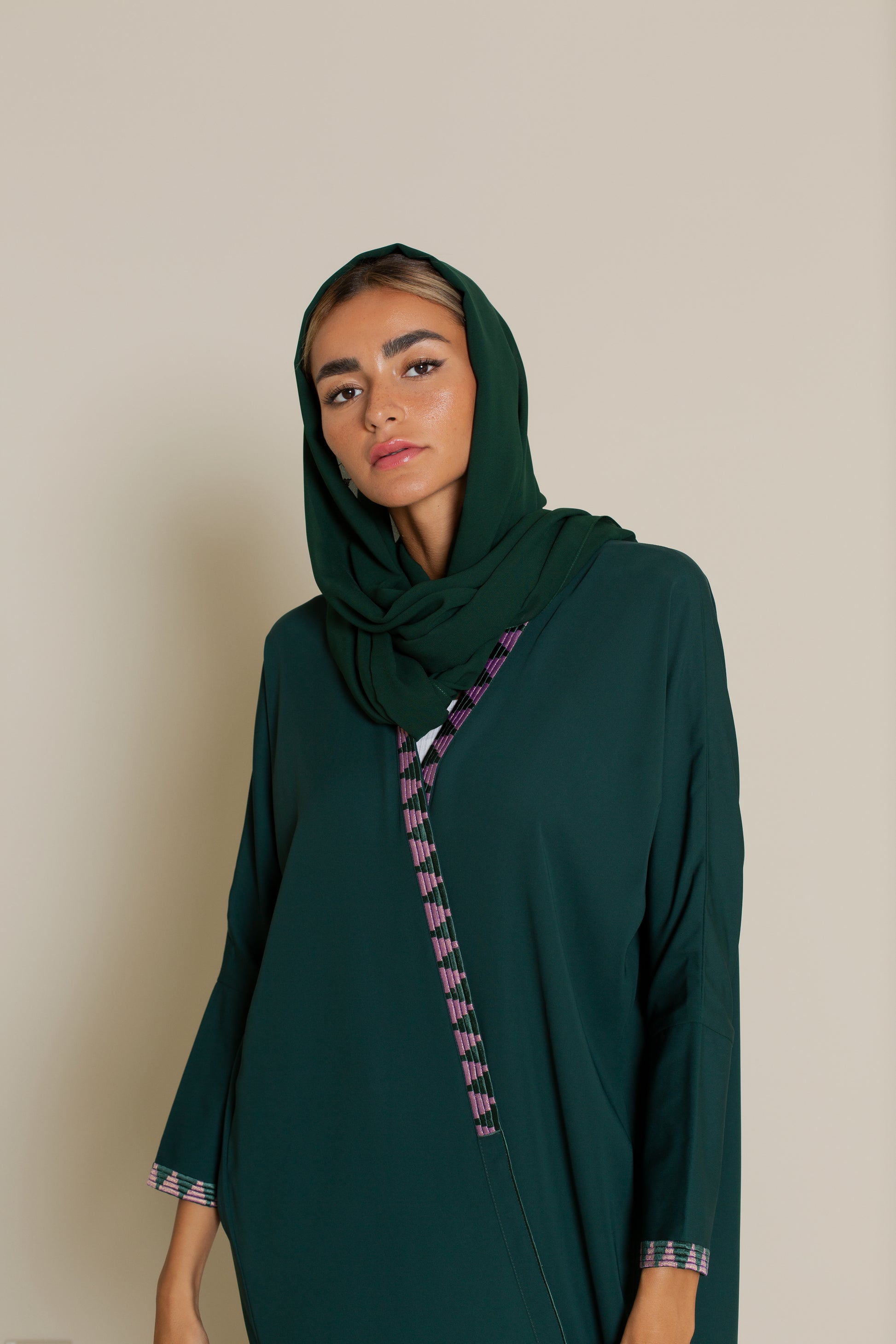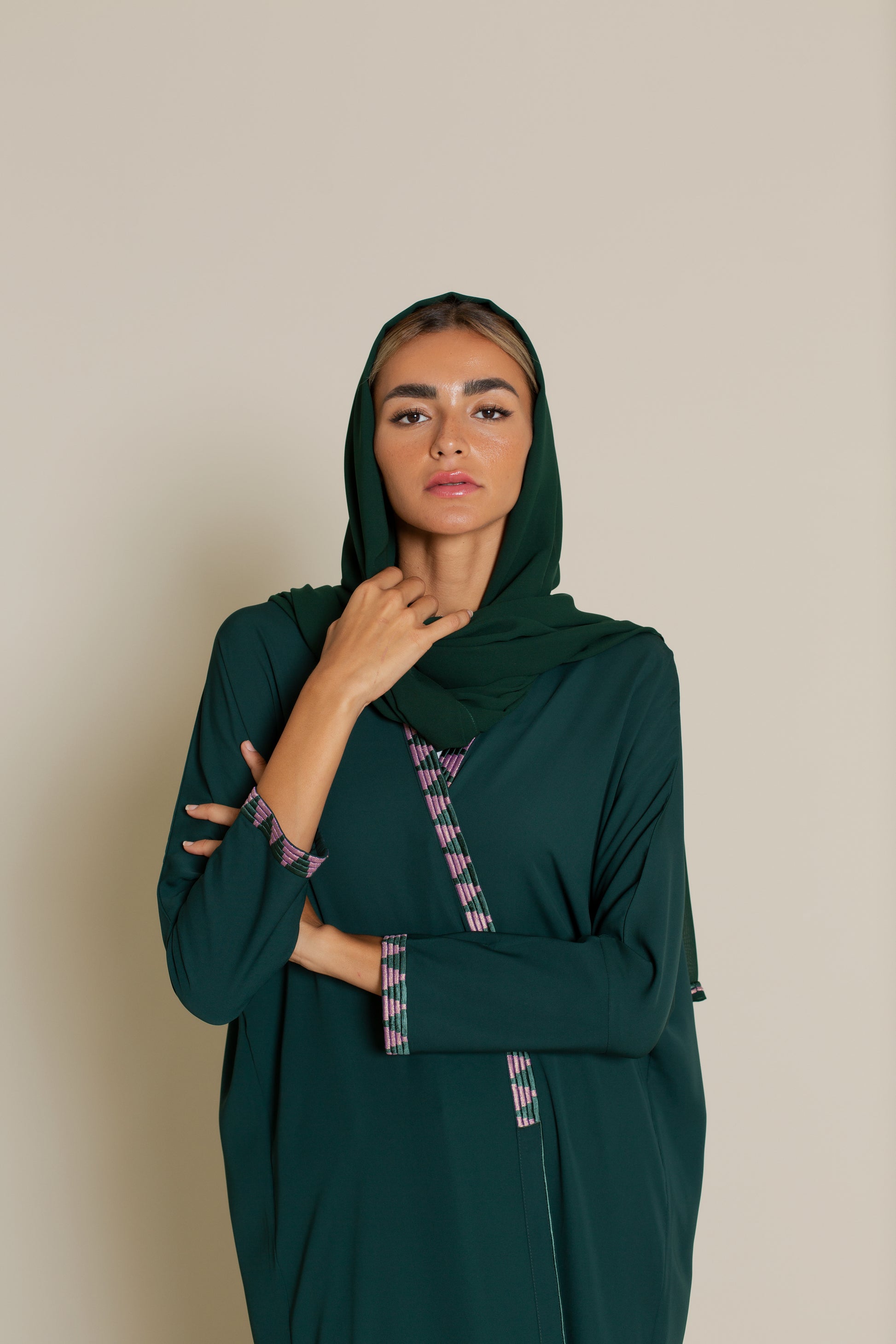 Each crepe abaya features intricate hand-designed stitching, showcasing artisanal craftsmanship and attention to detail.