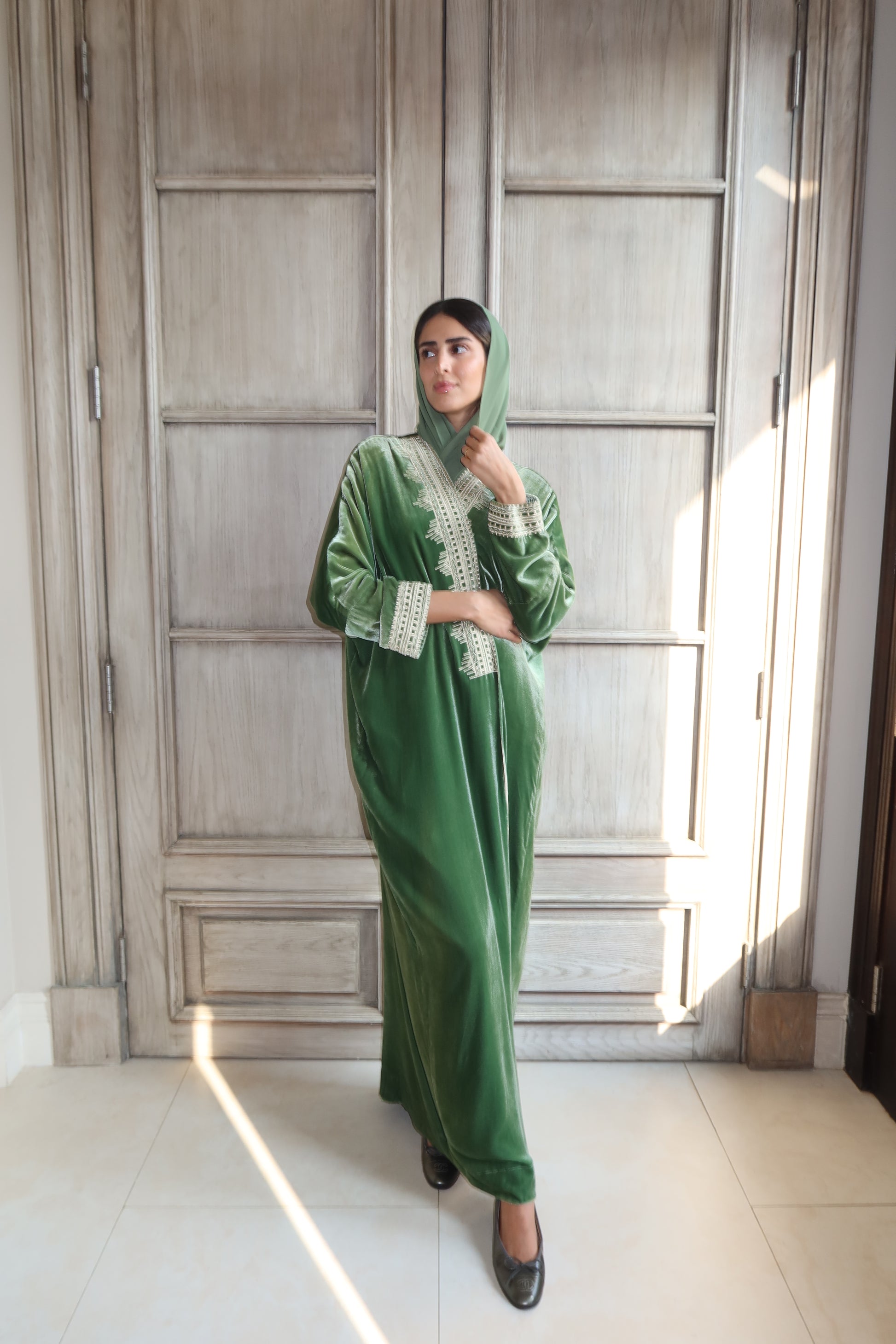 Crafted from luxurious velvet material, offering a plush and elegant texture that exudes sophistication with beautiful embroidery.