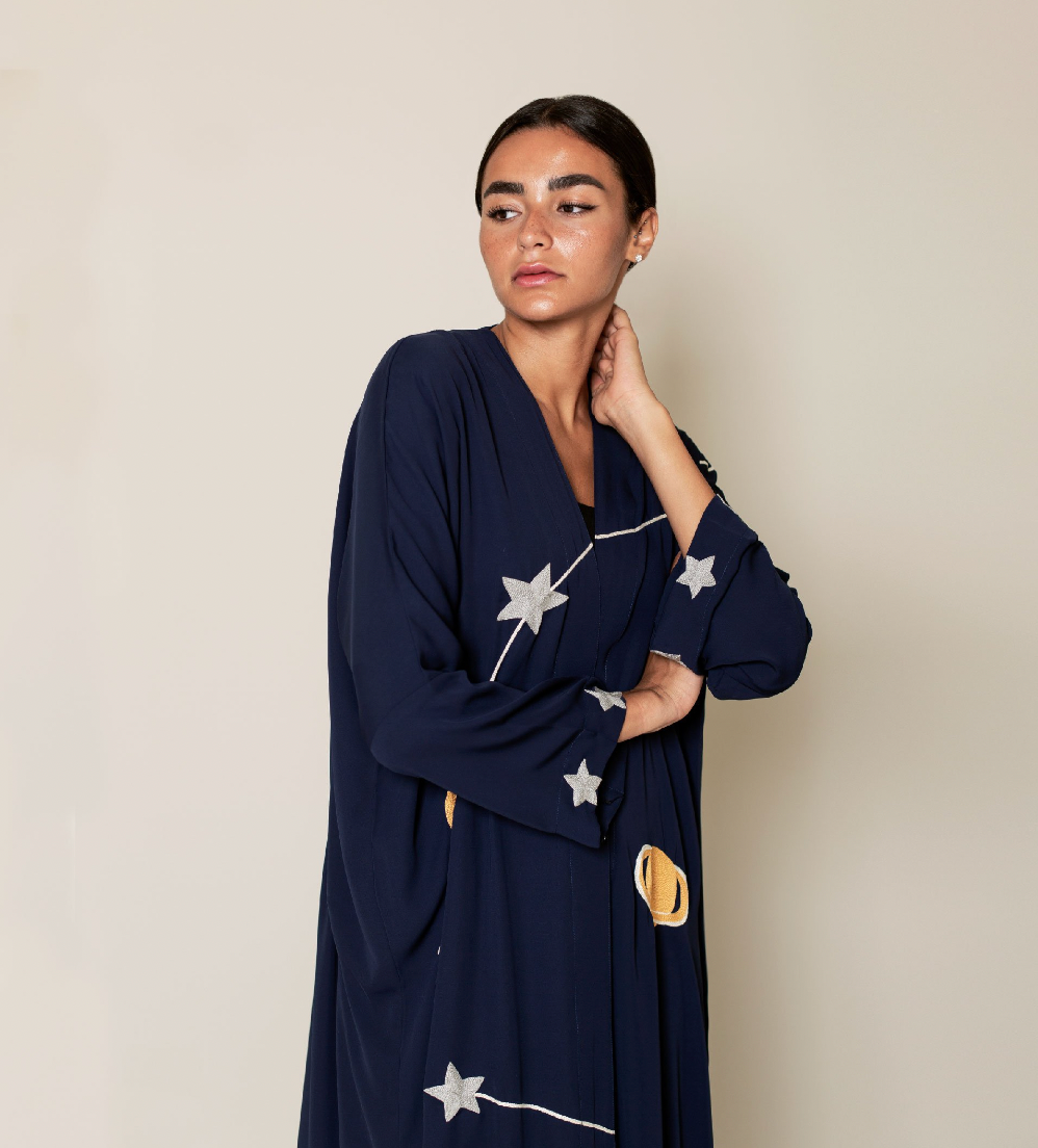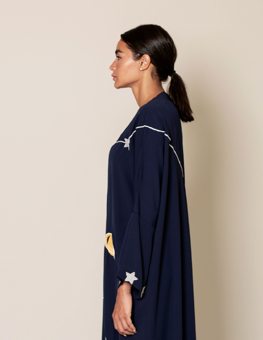Each crepe abaya features intricate hand-designed stitching, showcasing artisanal craftsmanship and attention to detail.