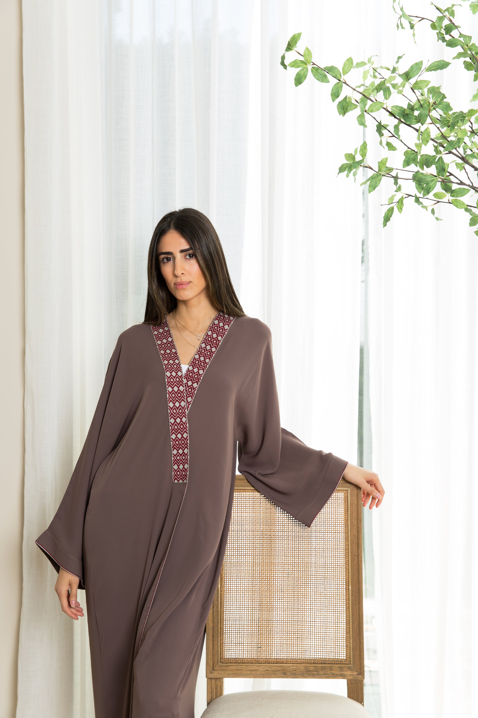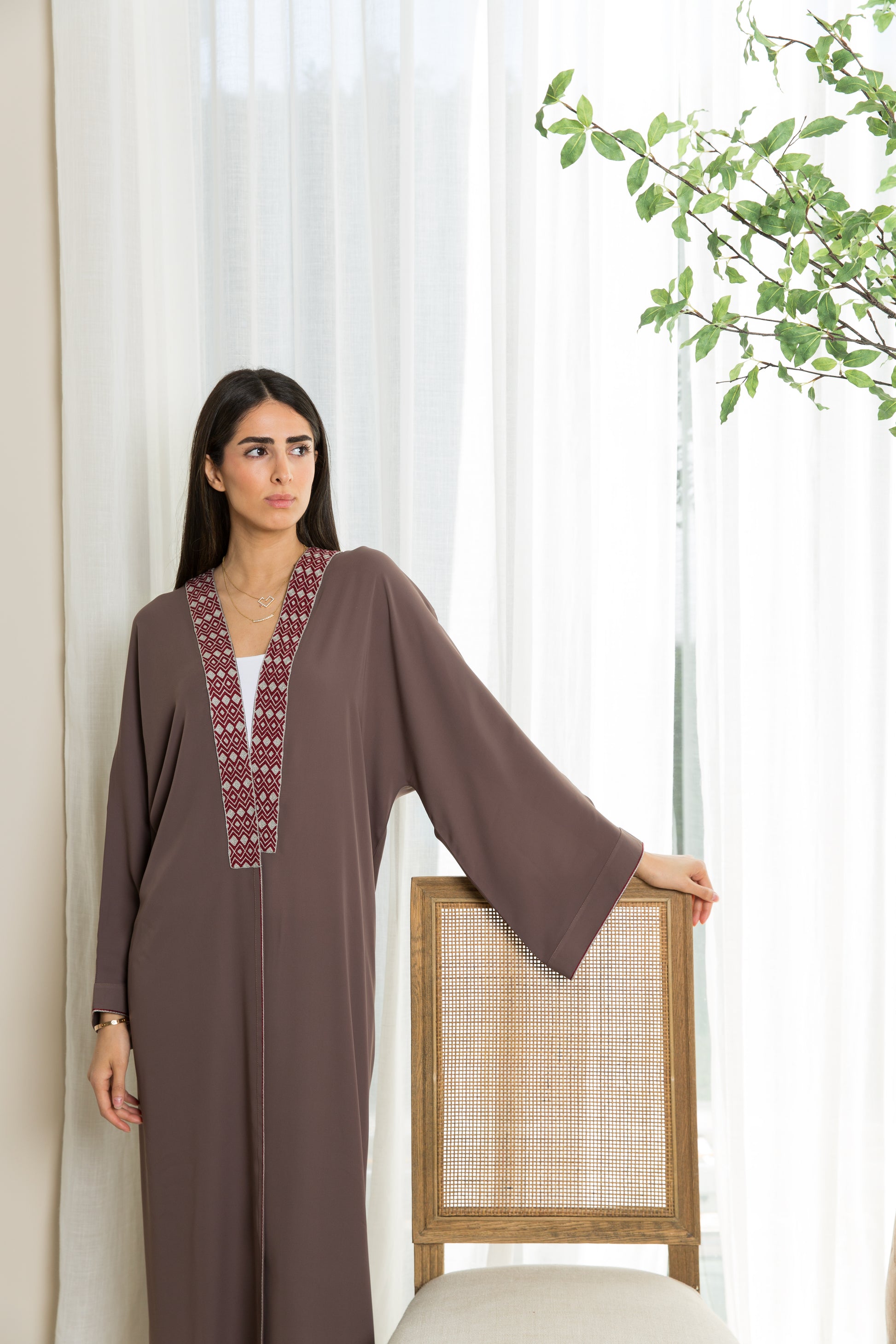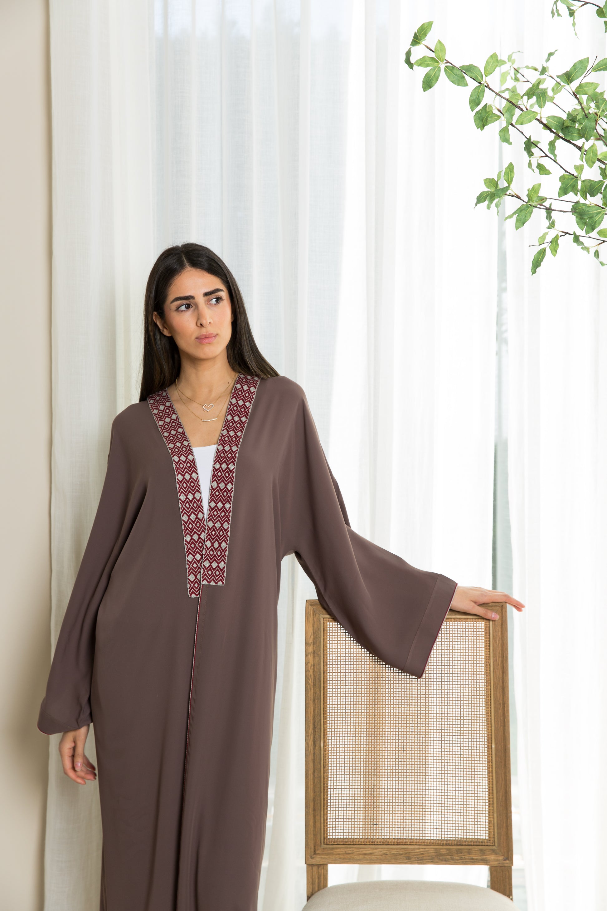 Each crepe abaya features intricate hand-designed stitching, showcasing artisanal craftsmanship and attention to detail.