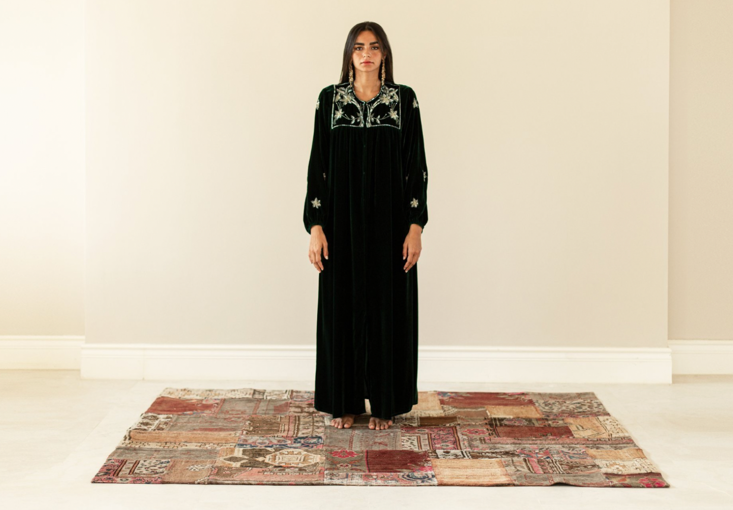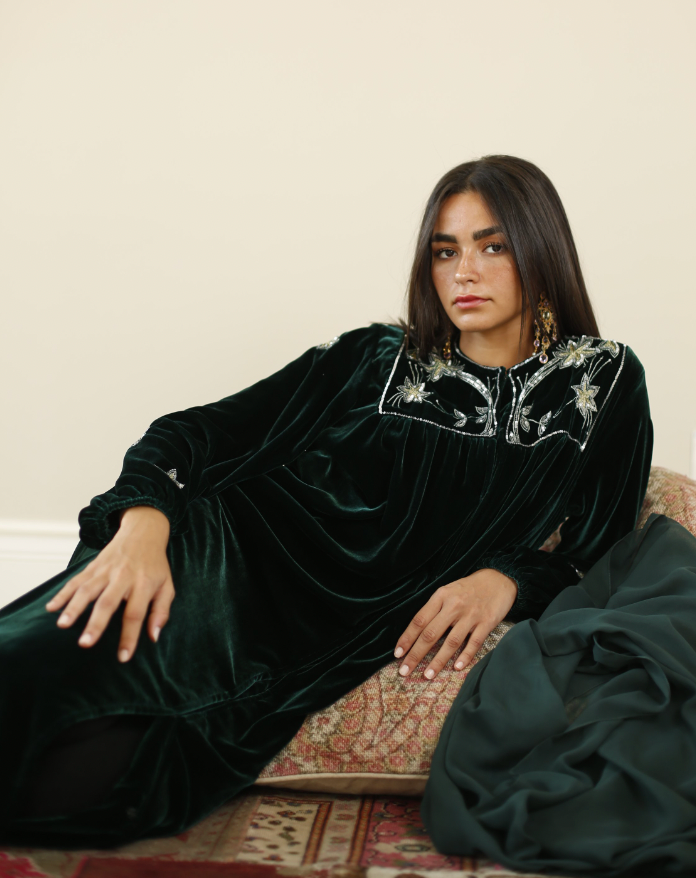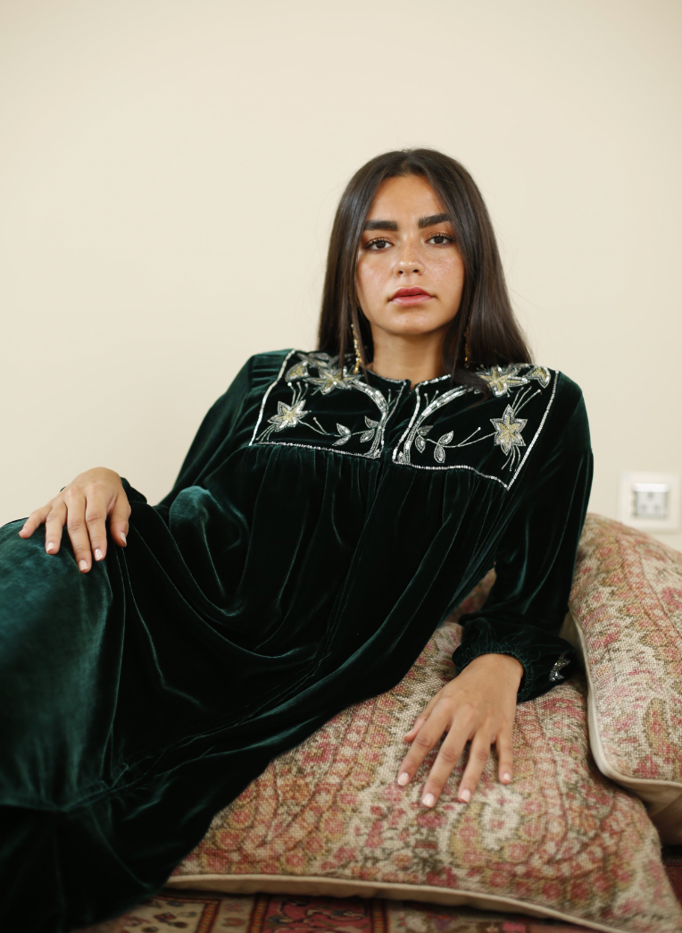 Crafted from luxurious velvet material, offering a plush and elegant texture that exudes sophistication with beautiful embroidery.
