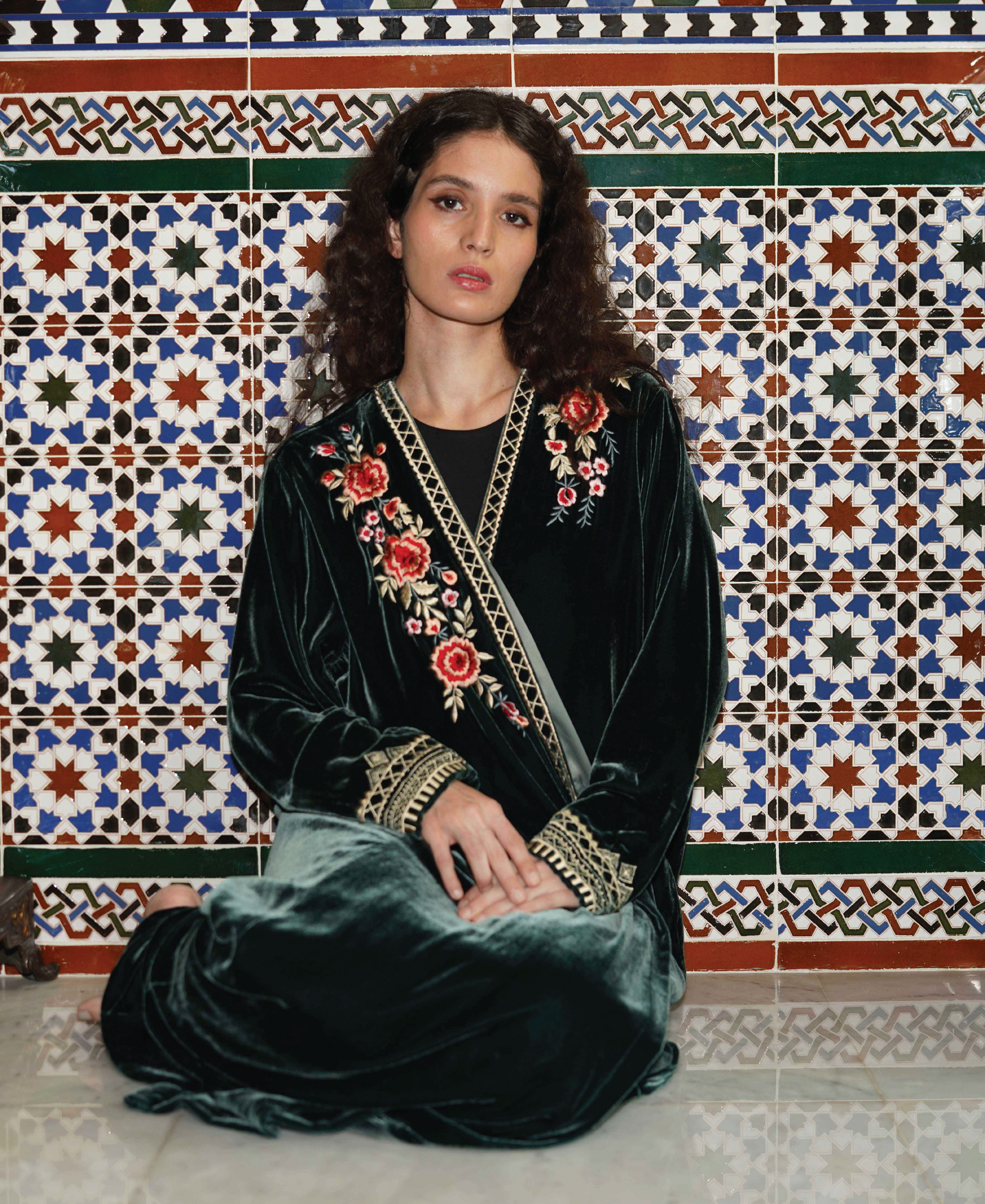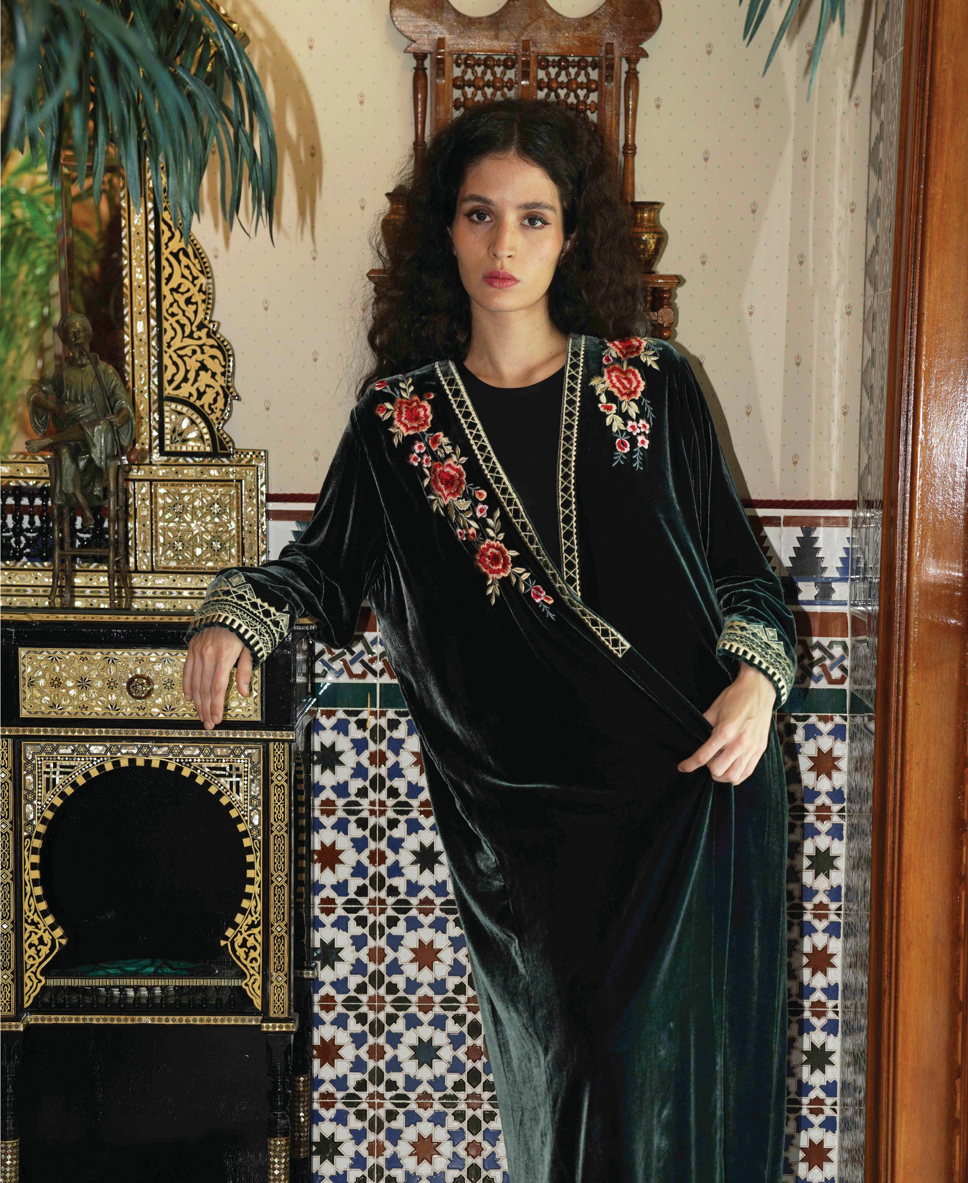 Crafted from luxurious velvet material, offering a plush and elegant texture that exudes sophistication with beautiful embroidery.