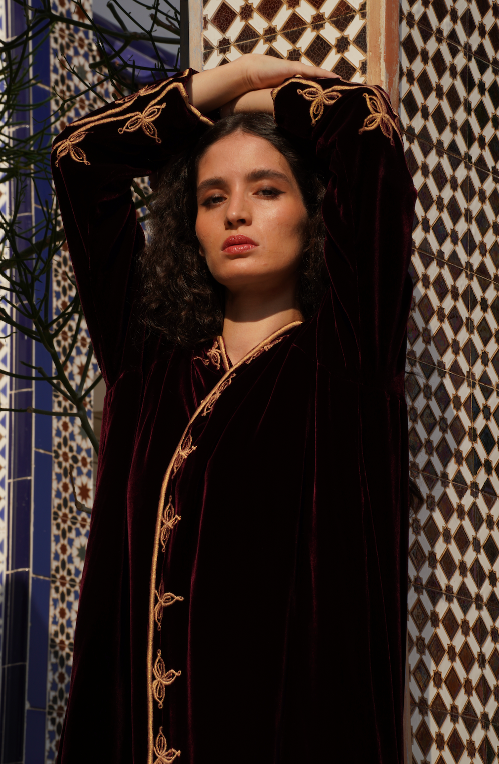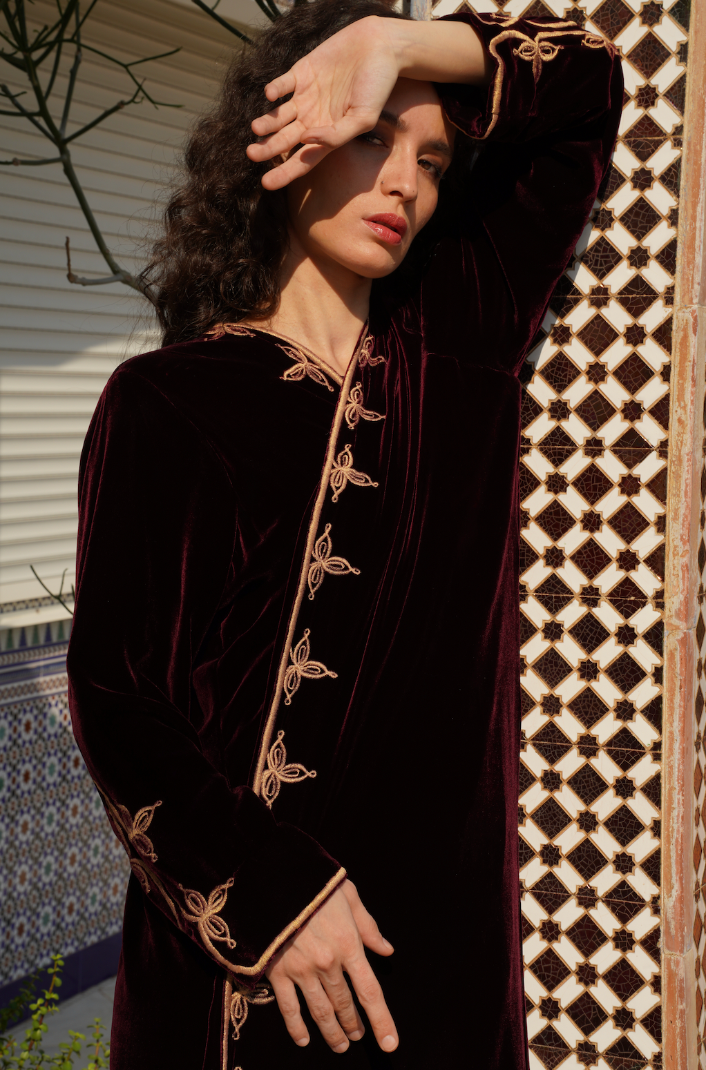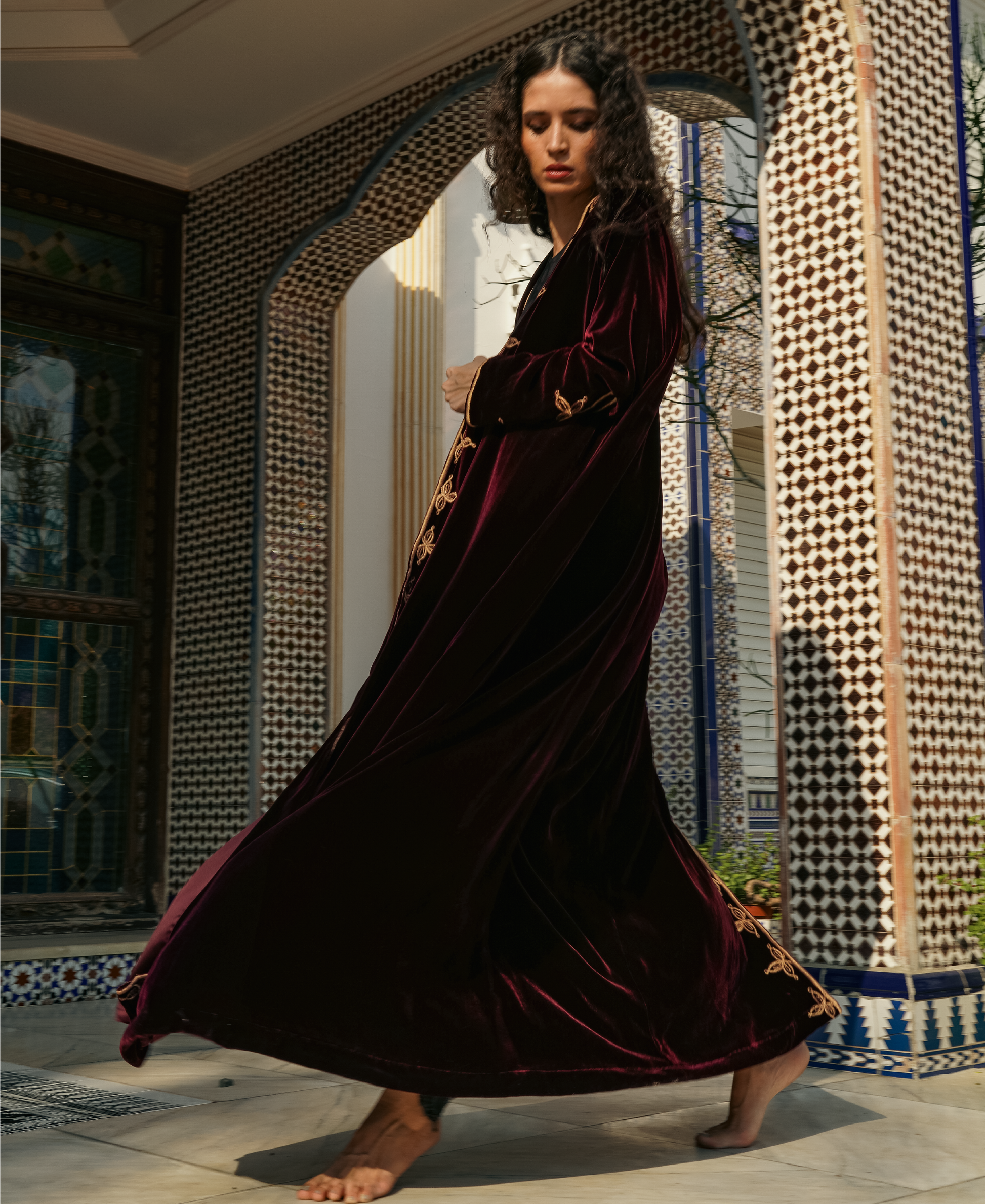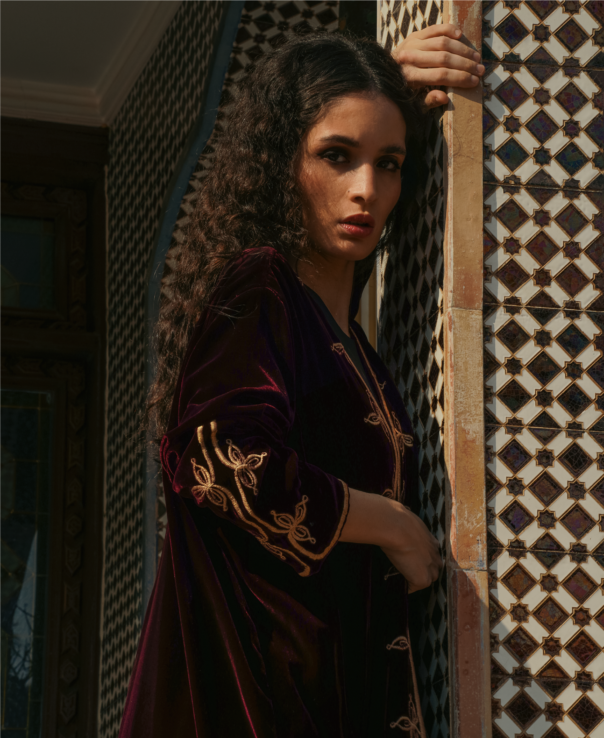 Crafted from luxurious velvet material, offering a plush and elegant texture that exudes sophistication with beautiful embroidery.