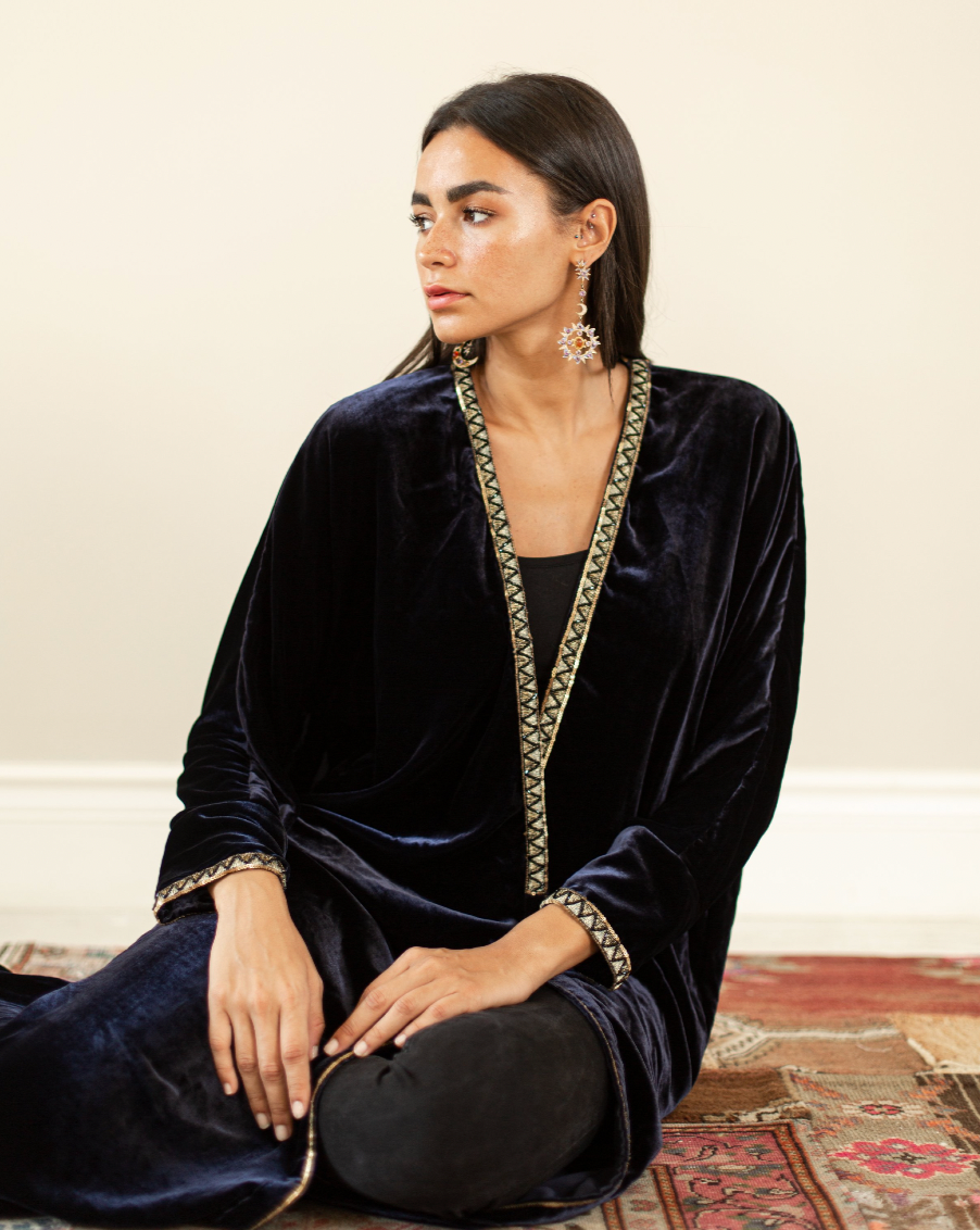 Crafted from luxurious velvet material, offering a plush and elegant texture that exudes sophistication with beautiful embroidery.
