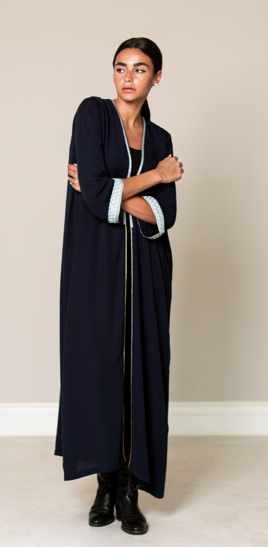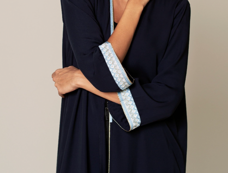 Each crepe abaya features intricate hand-designed stitching, showcasing artisanal craftsmanship and attention to detail.