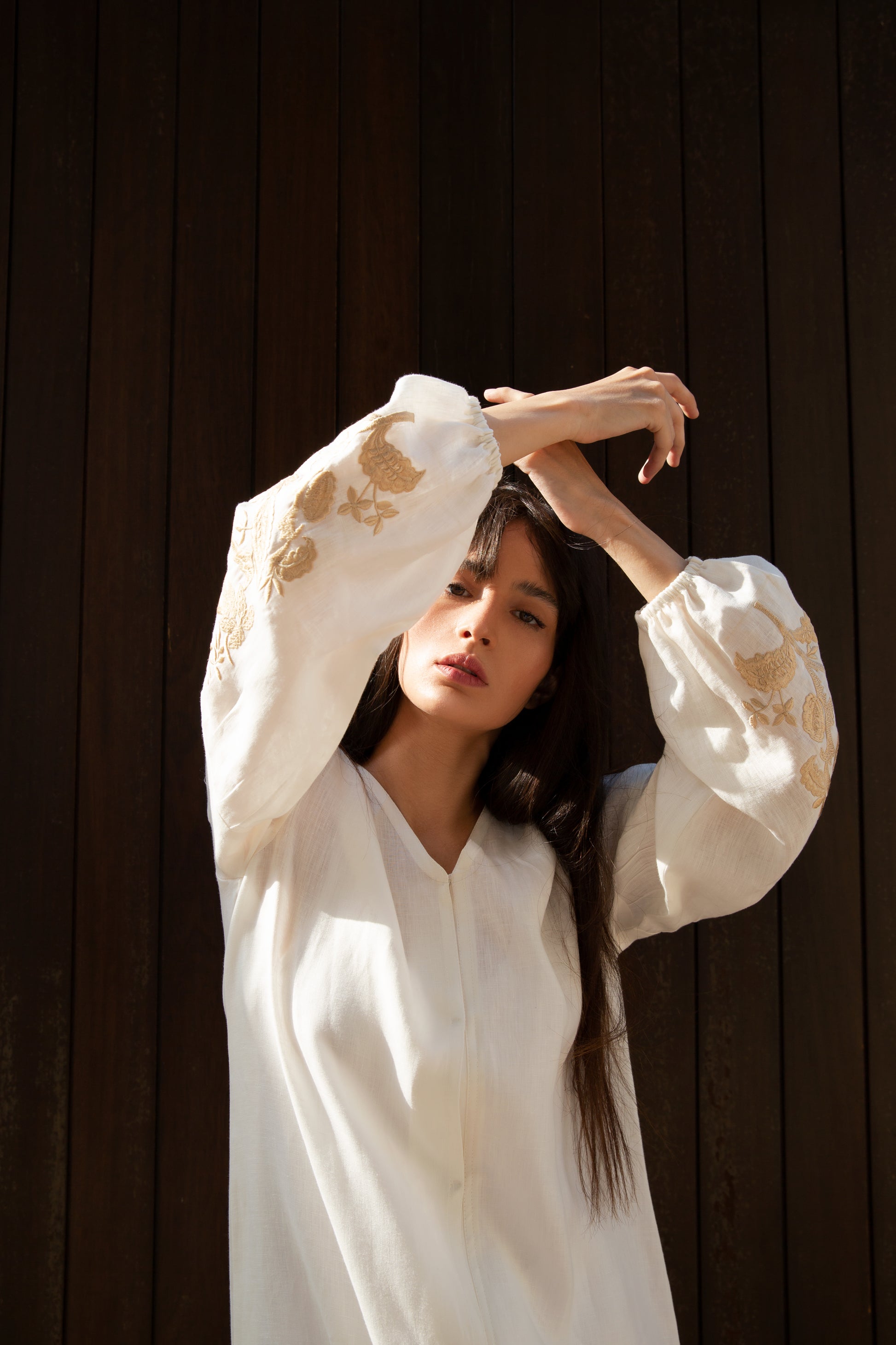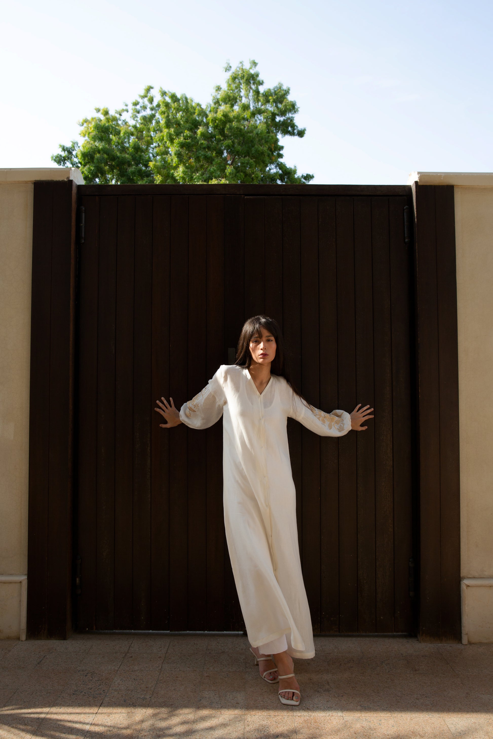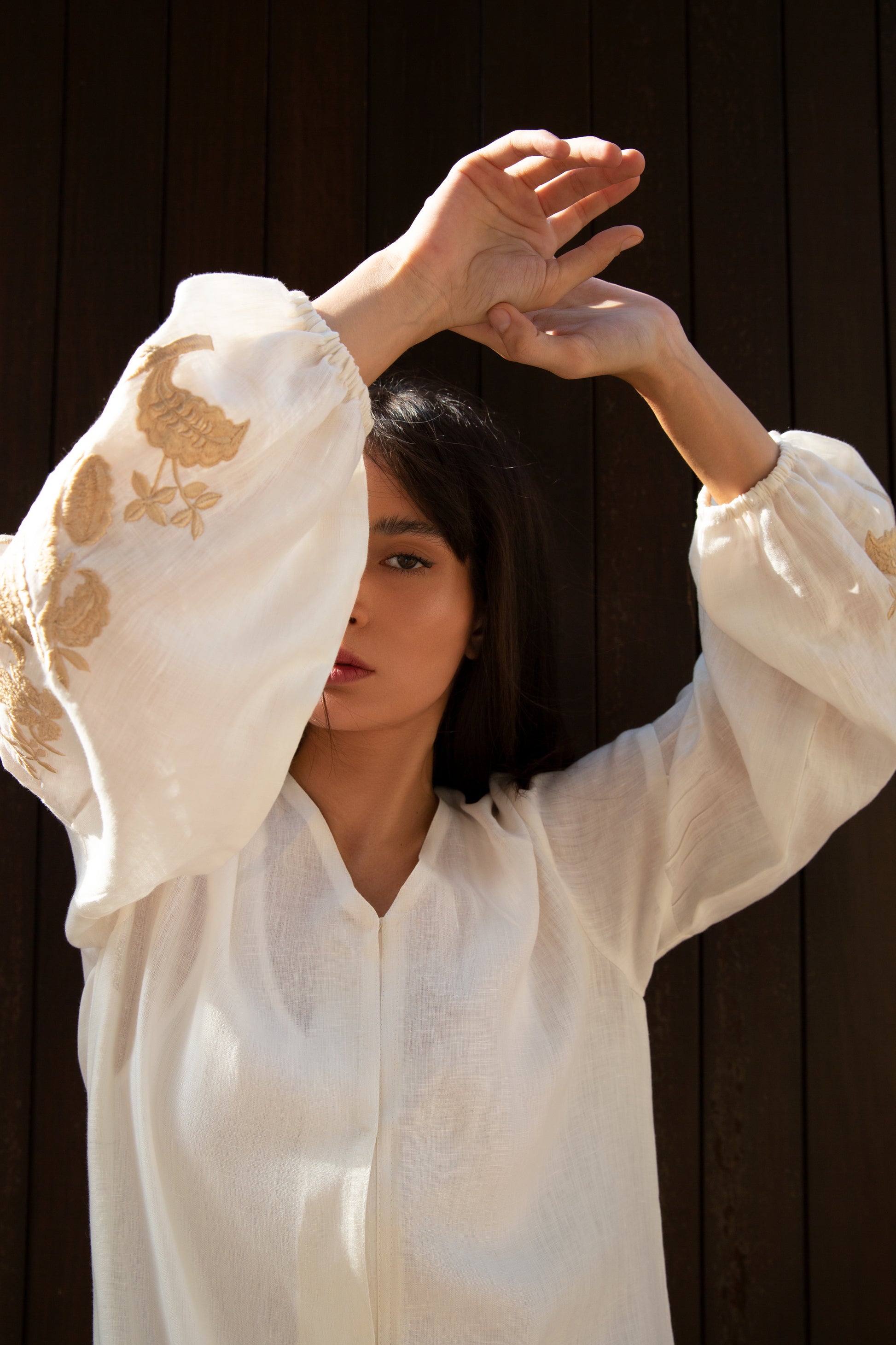 Each linen abaya features intricate hand-designed stitching, showcasing artisanal craftsmanship and attention to detail.